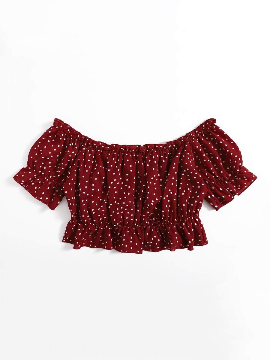Off The Shoulder Polka Dot Blouse
