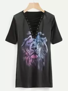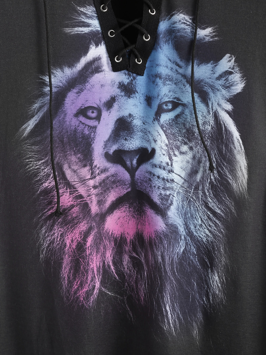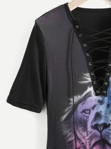 Ombre Lion Print Eyelet Lace Up Front Dress