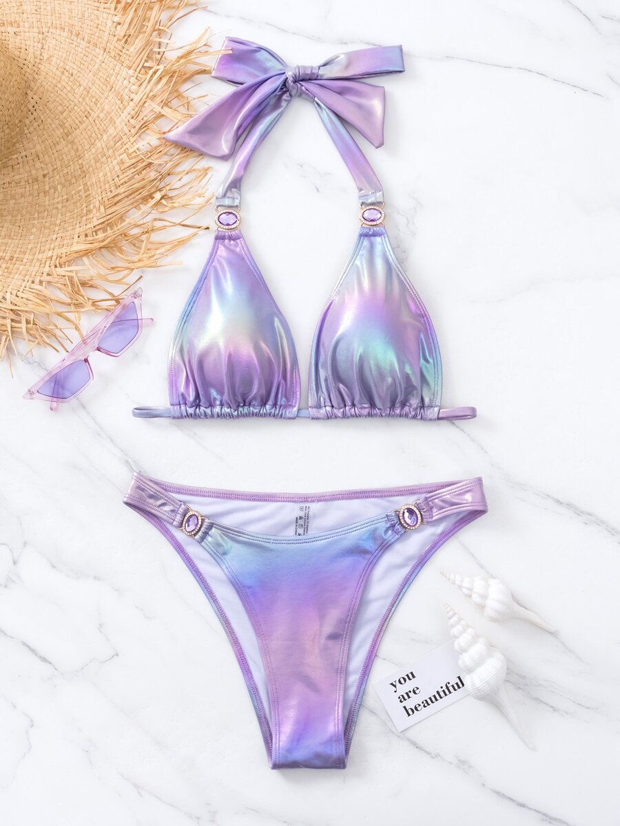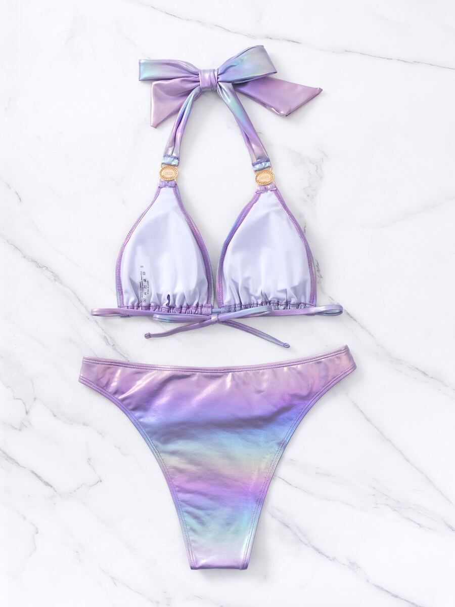 Ombre Metallic Triangle Summer Beach Bikini Set