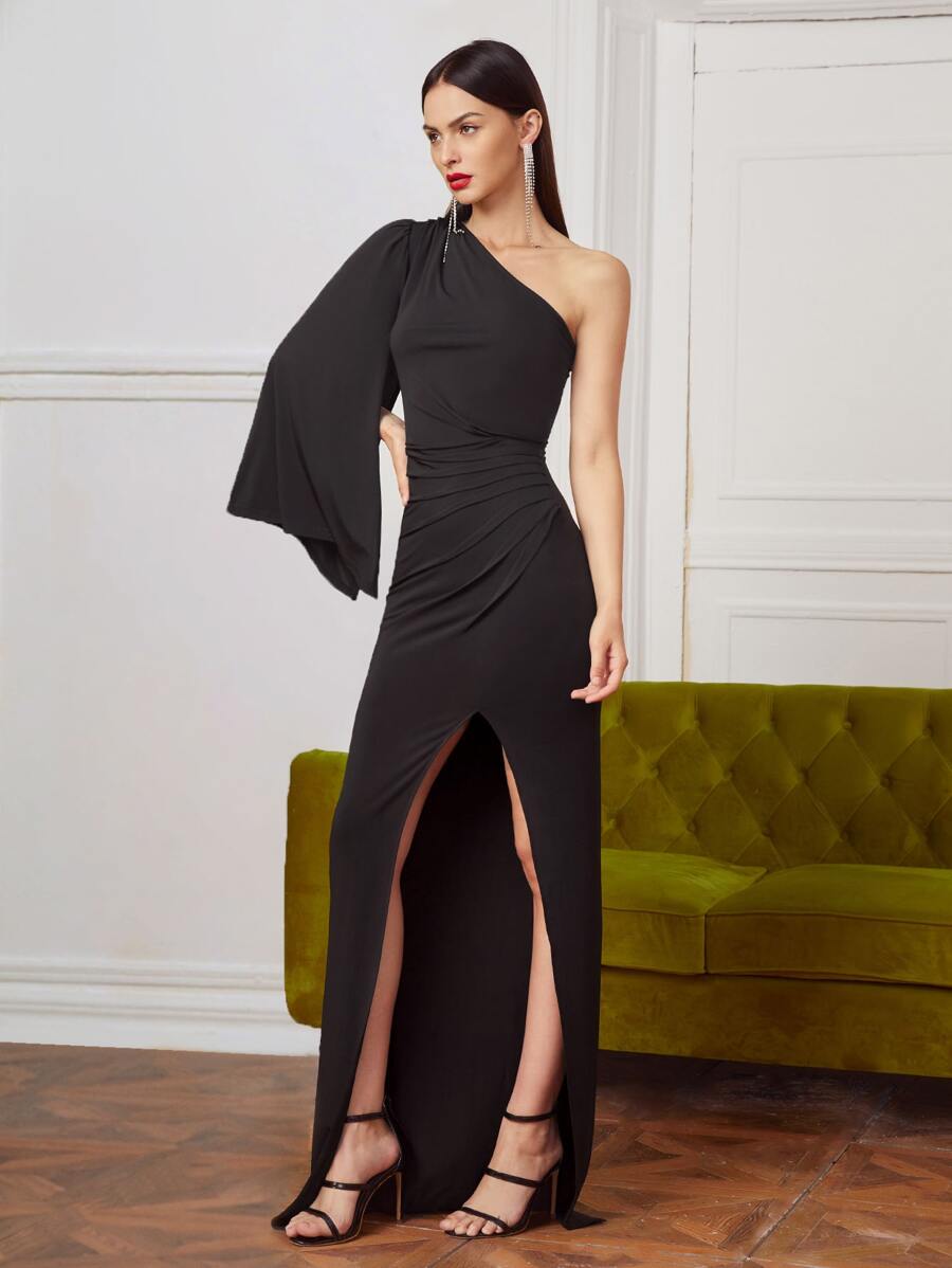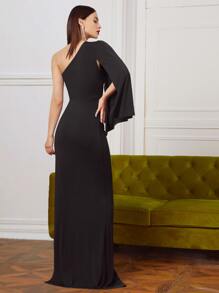One Shoulder Cloak Sleeve Split Thigh Dress