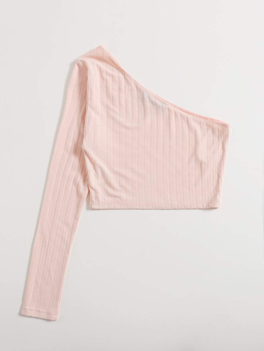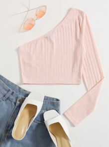 One Shoulder Ribbed Crop Top