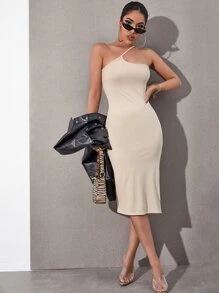 One Shoulder Split Thigh Dress