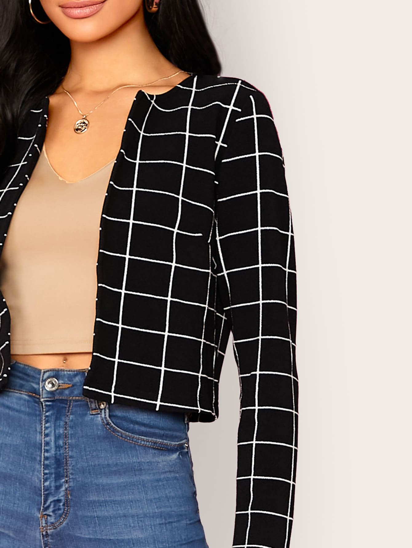 Open Front Grid Crop Blazer
