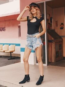 Open Front Mock-neck Bodysuit