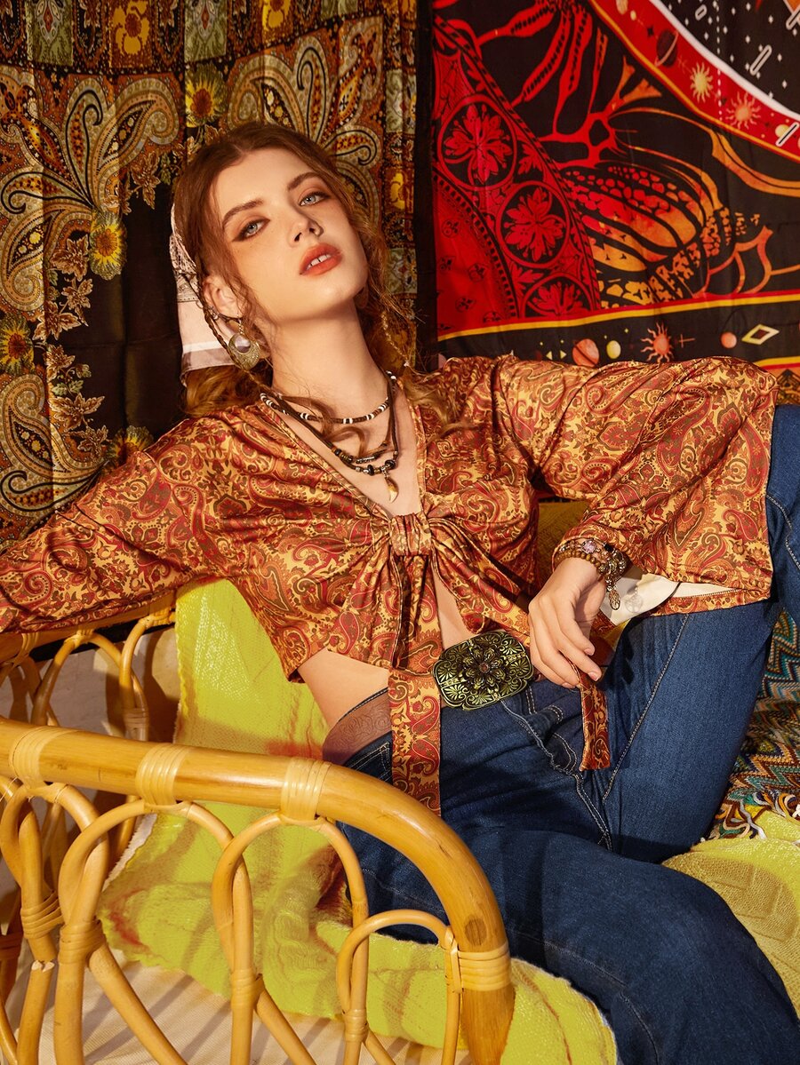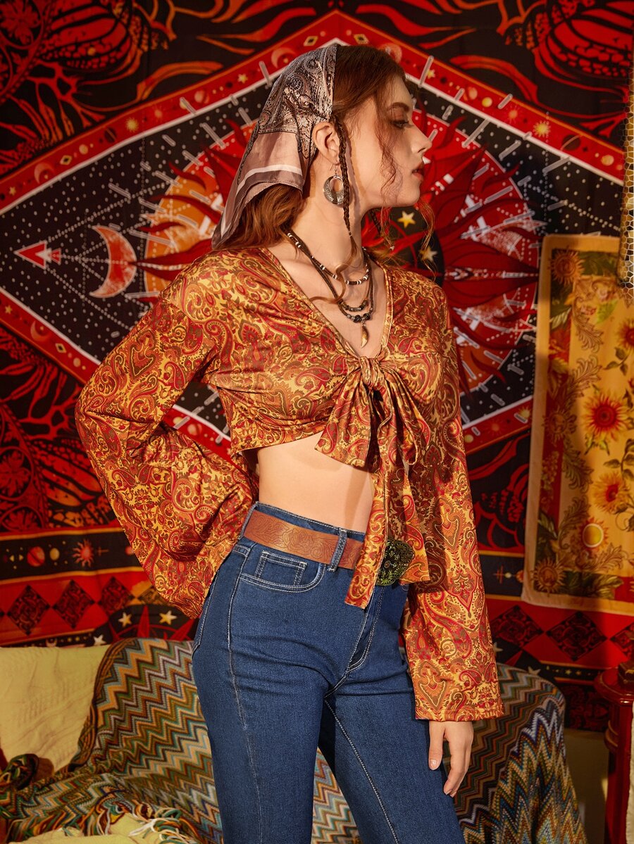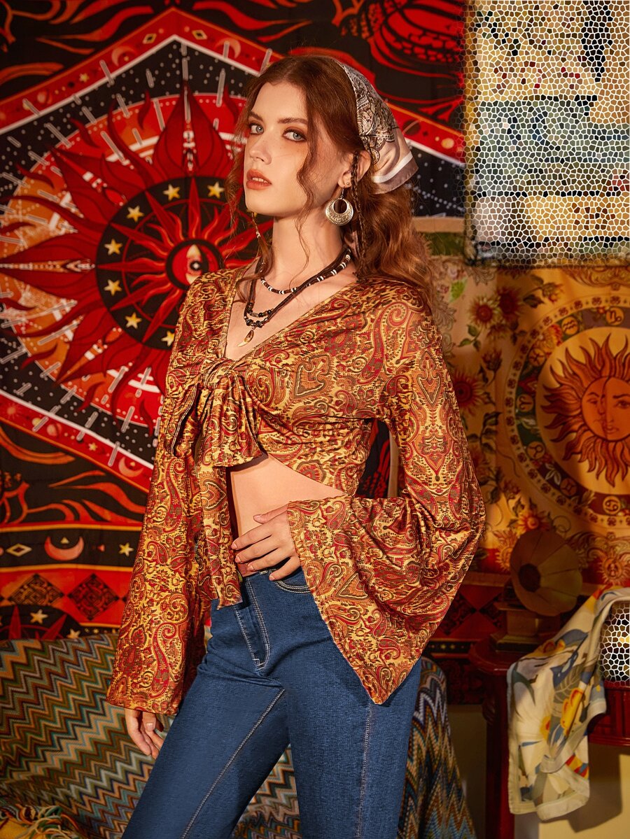 Paisley Print Tie Front Top