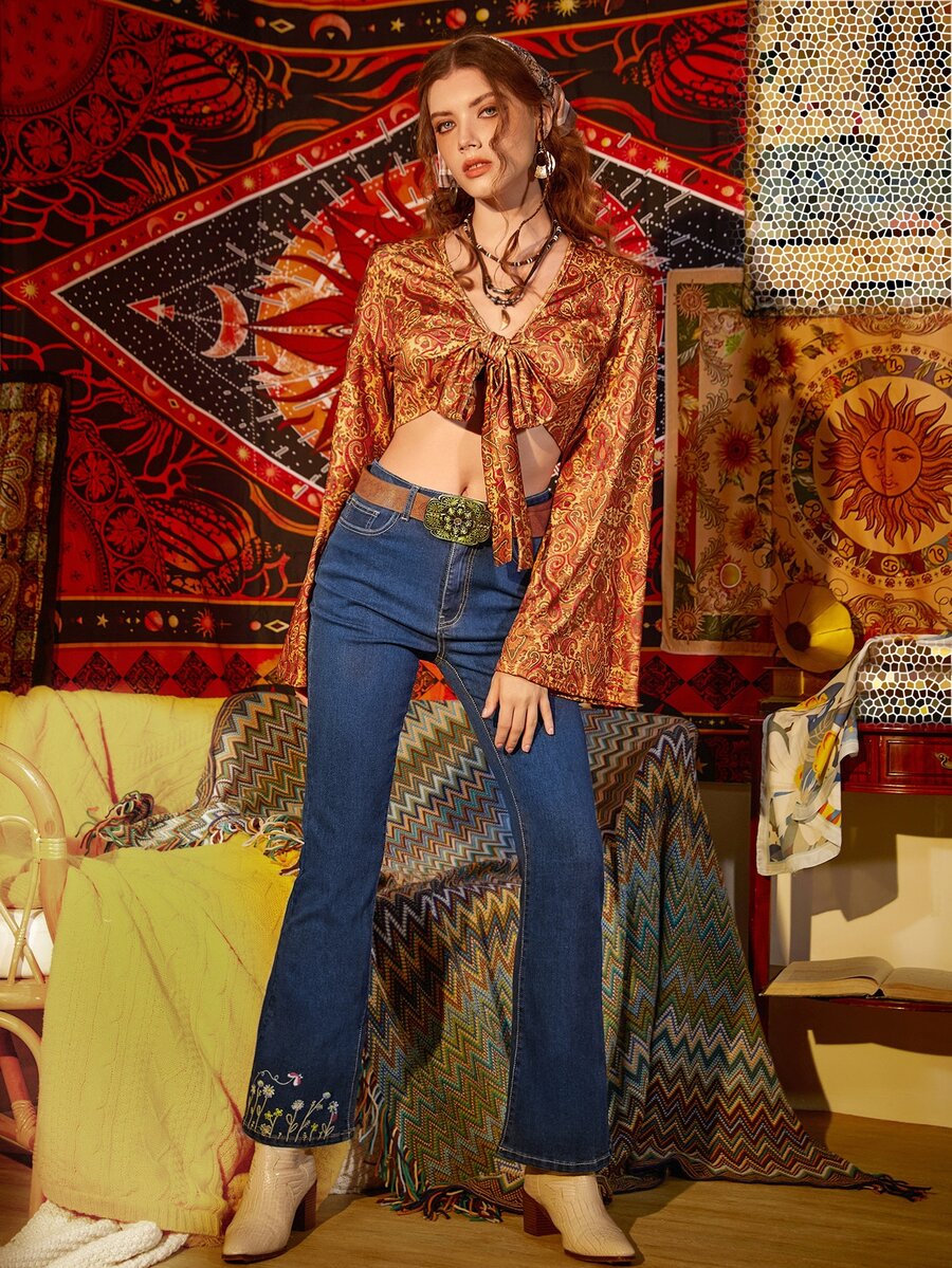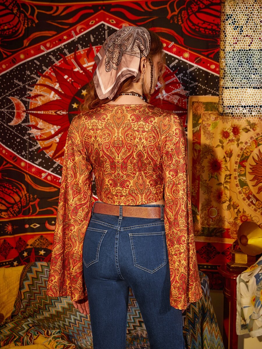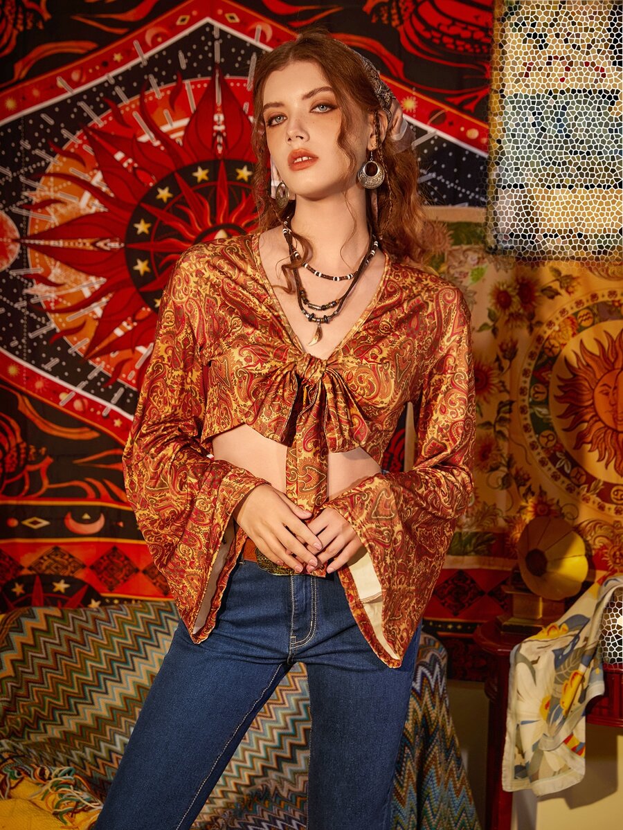 Paisley Print Tie Front Top