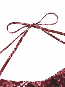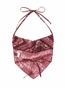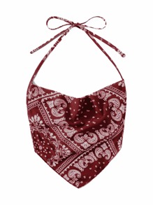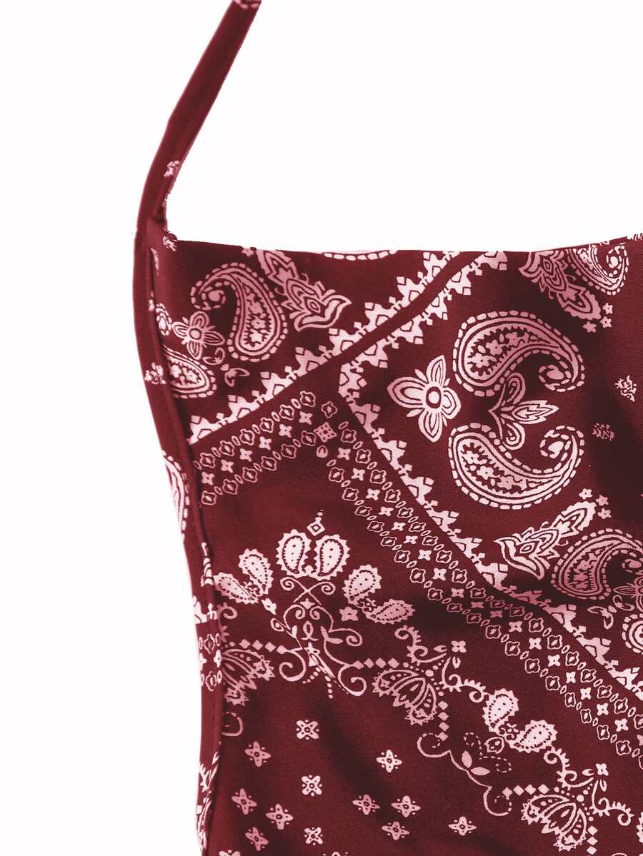 Paisley & Scarf Print Backless Halter Top
