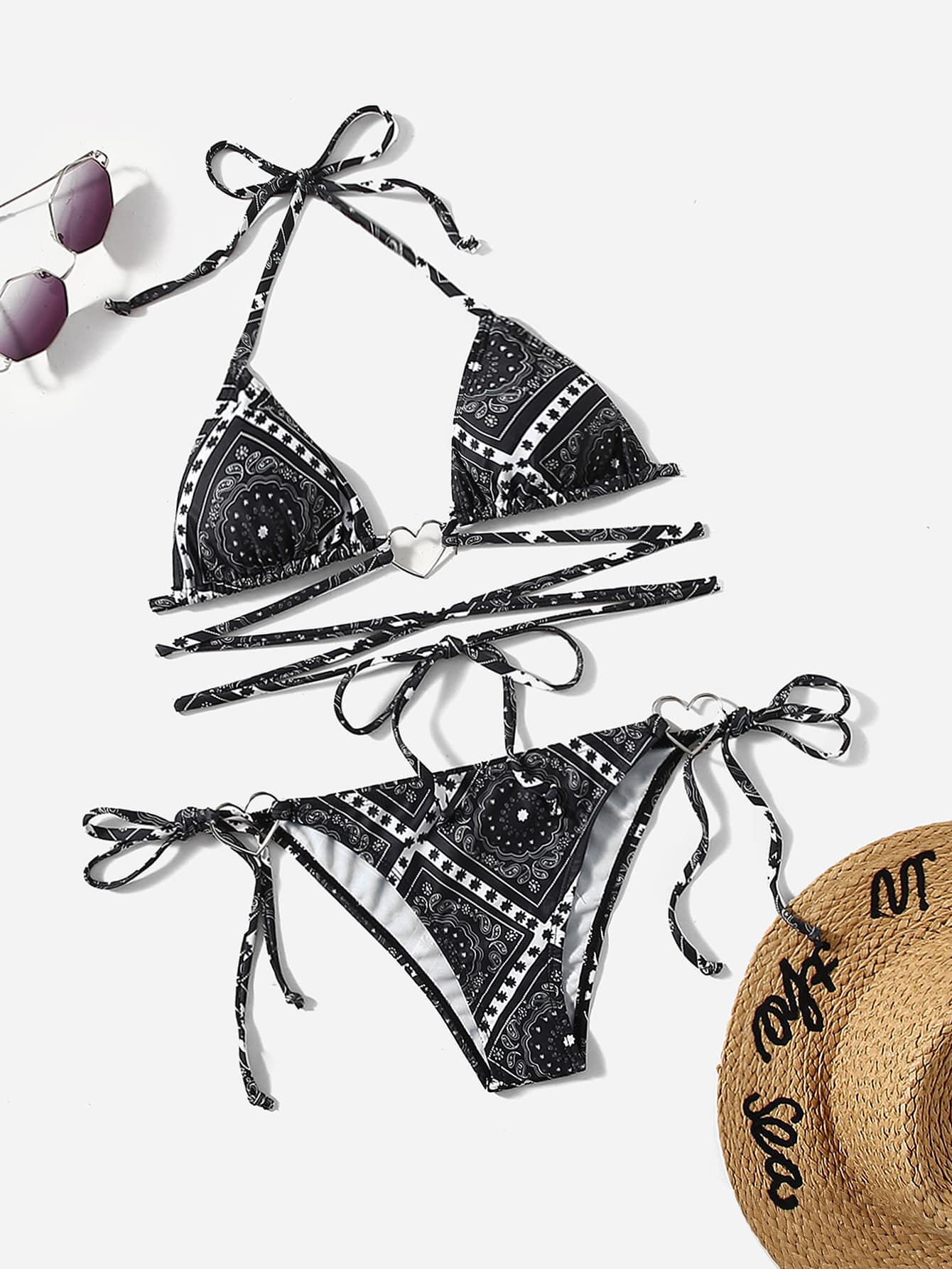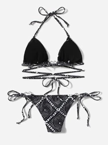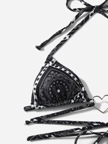 Paisley & Scarf Print Halter Triangle Bikini