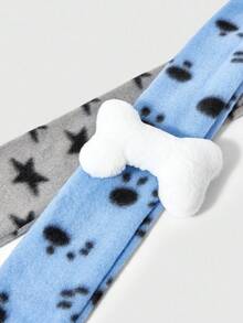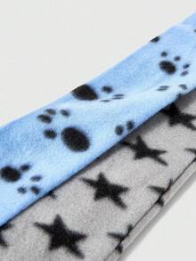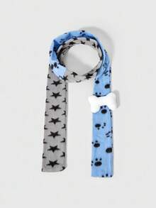 Anime Patchwork Star & Paw Print Pattern Adjustable Bone Decor Warm Scarf, Fashion Versatile Unisex Accessory For Autumn/Winter