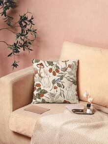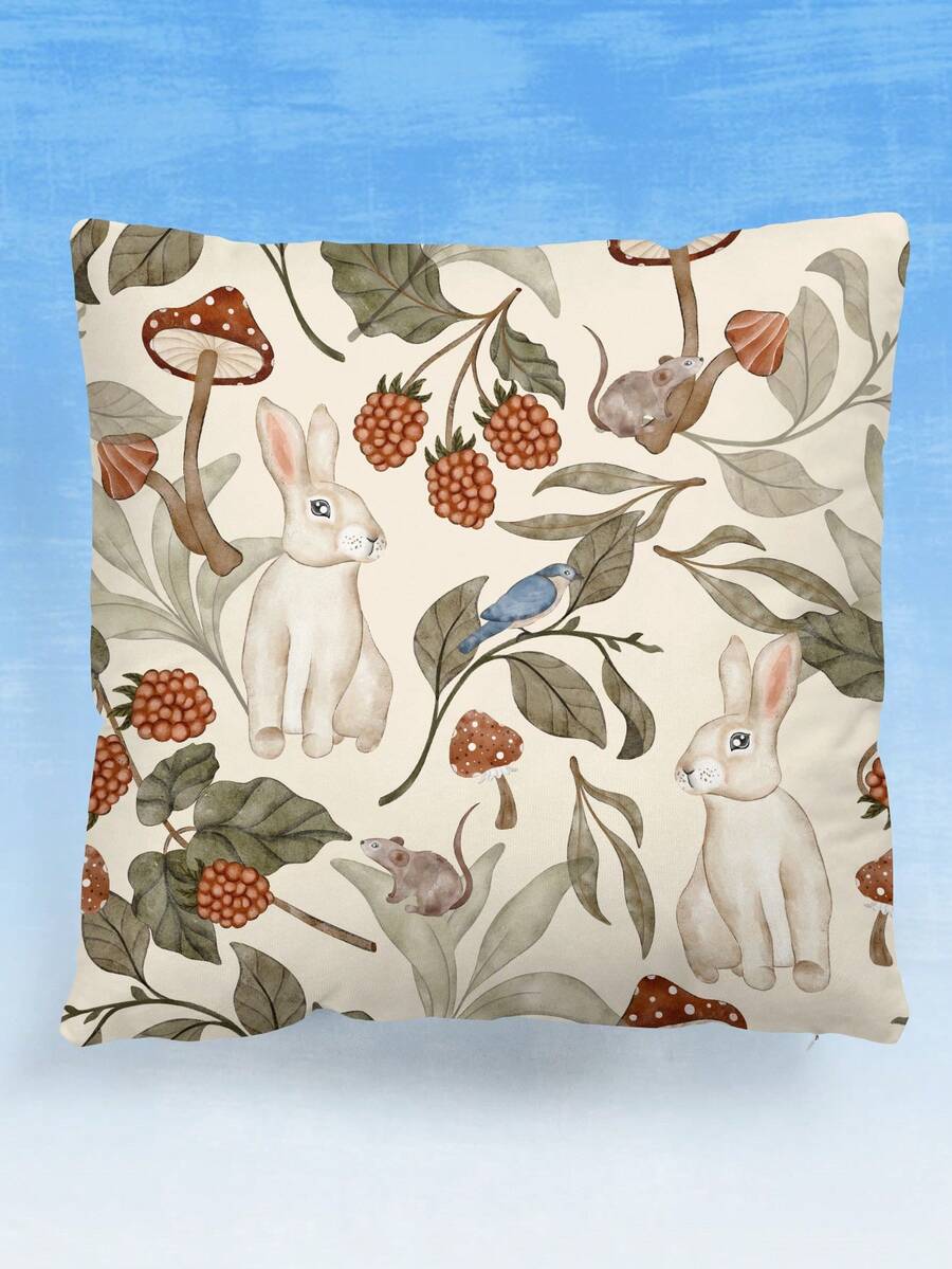 Pati Paints 1pc Rabbit & Mushroom Pattern Cushion Cover Without Filler,Cute Washable Decorative Square Pillowcase