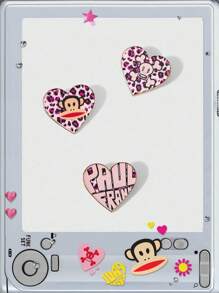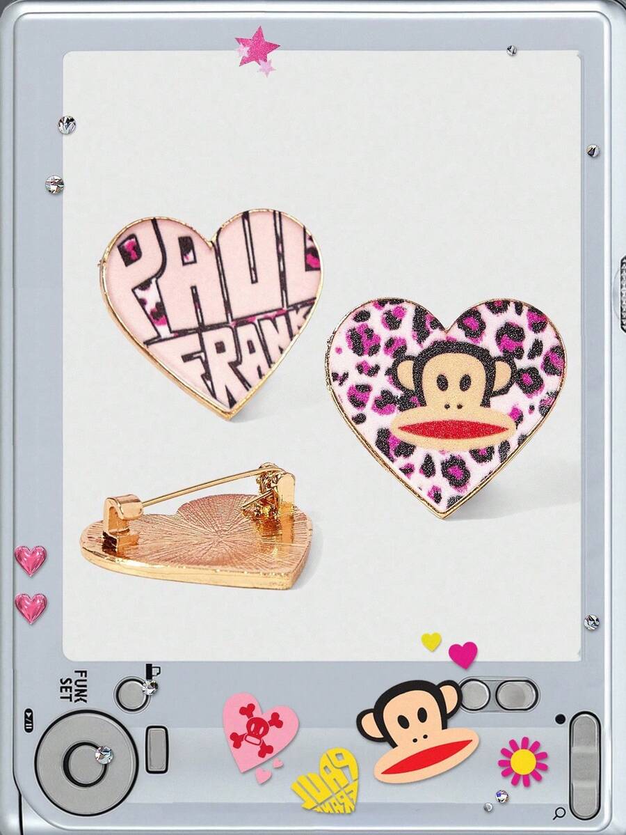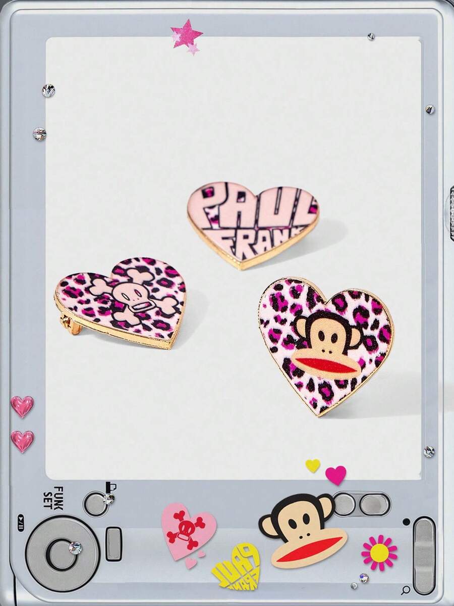 Paul Frank X ROMWE 3pcs Alloy Cute Leopard Print Heart Shaped Badges, Unisex Clothing & Bag Accessories