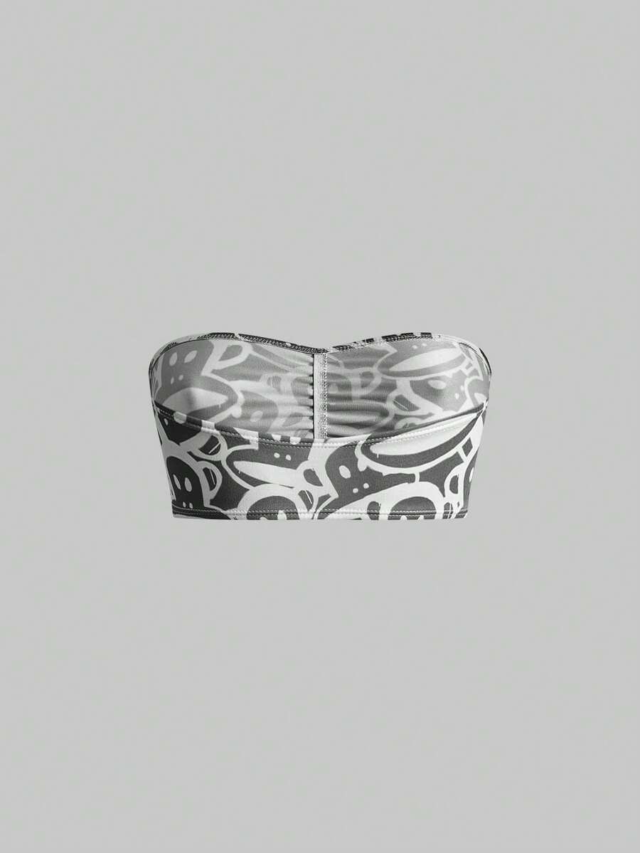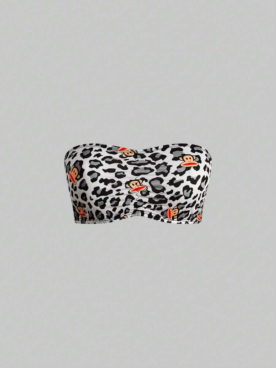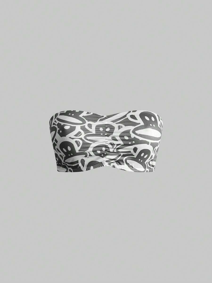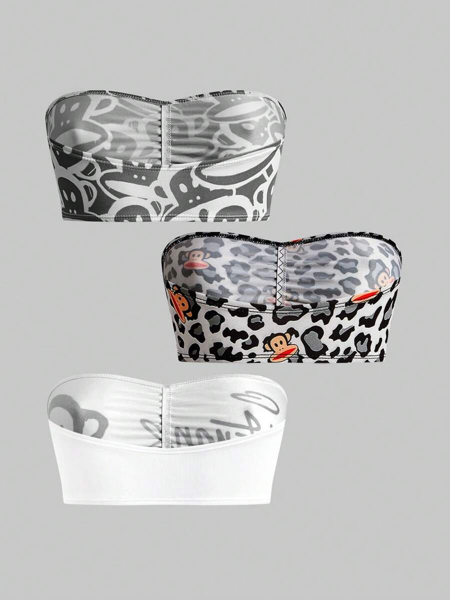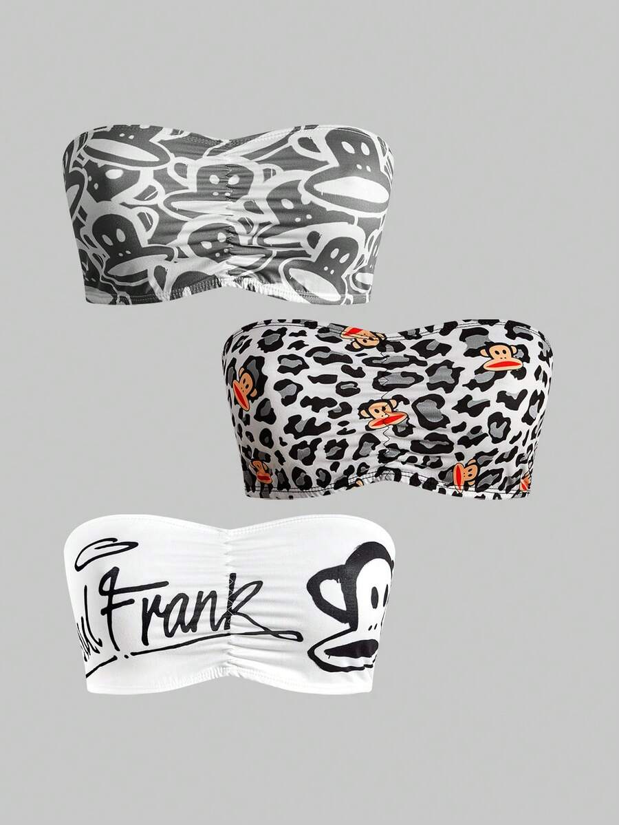 Paul Frank X ROMWE 3pcs Monkey Print Ruched Bandeau Bras