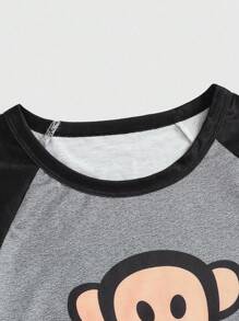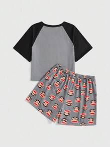 Paul Frank X ROMWE Cartoon Pattern Summer Casual Short Sleeve Top & Shorts Pajama Set, Versatile & Comfortable For Women