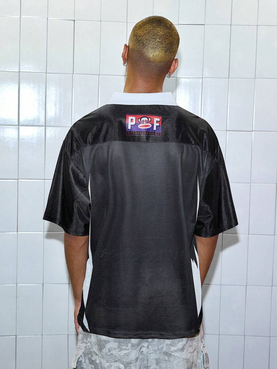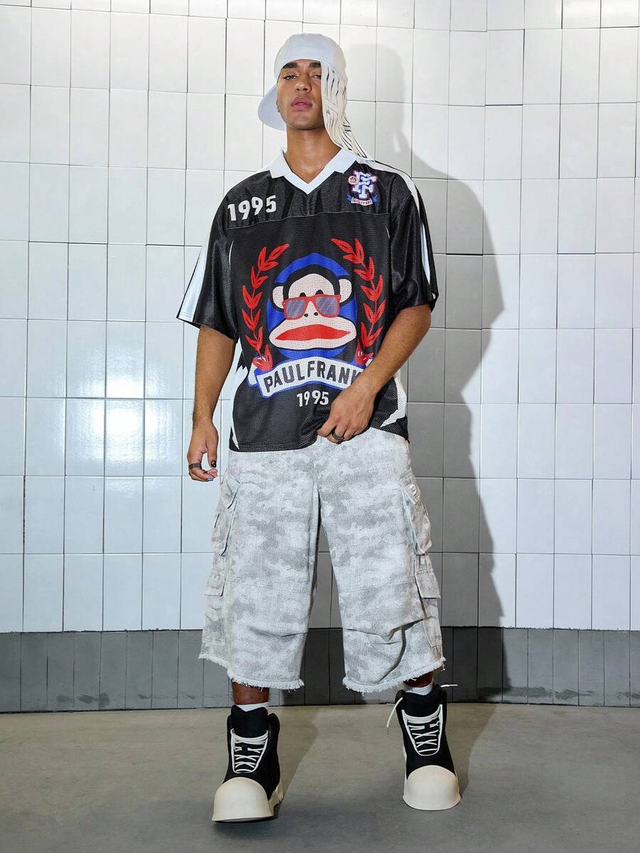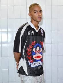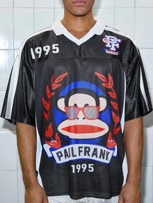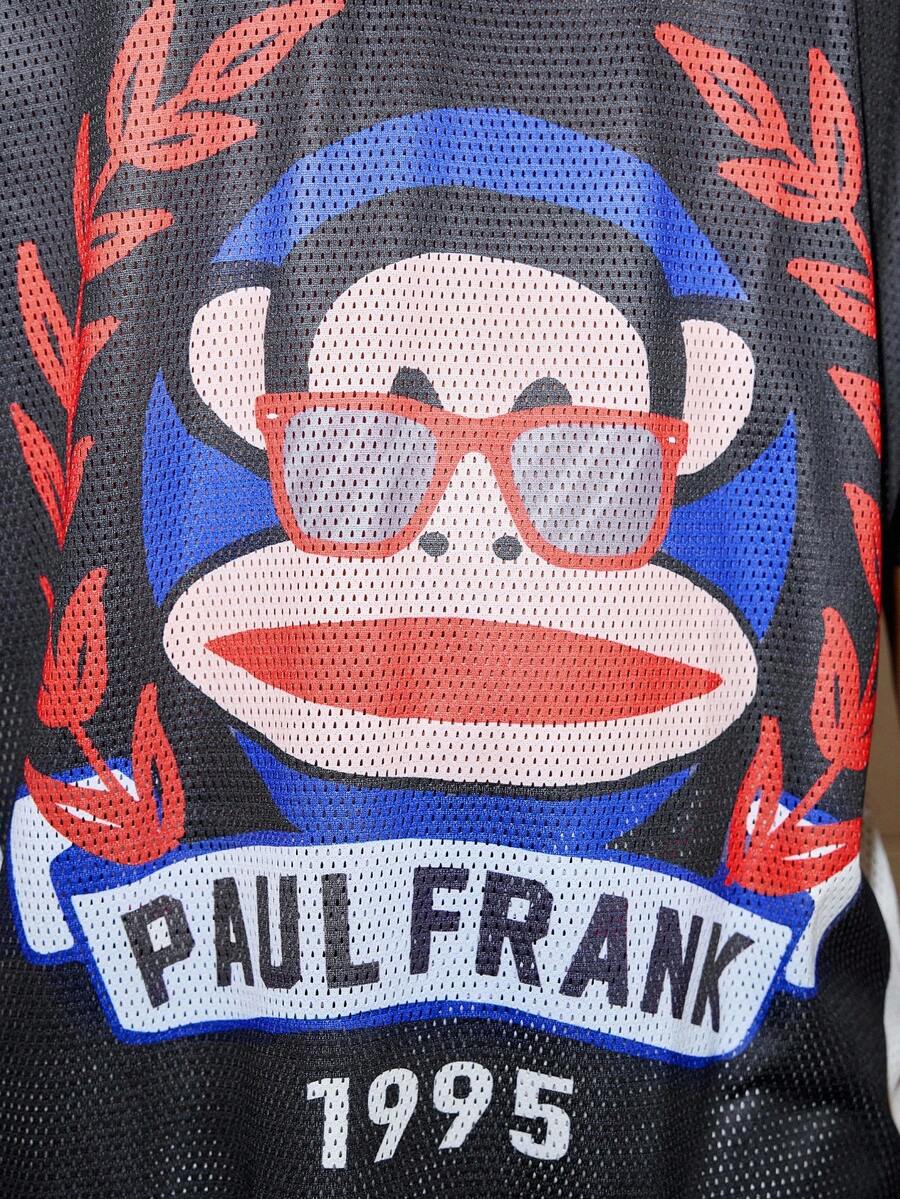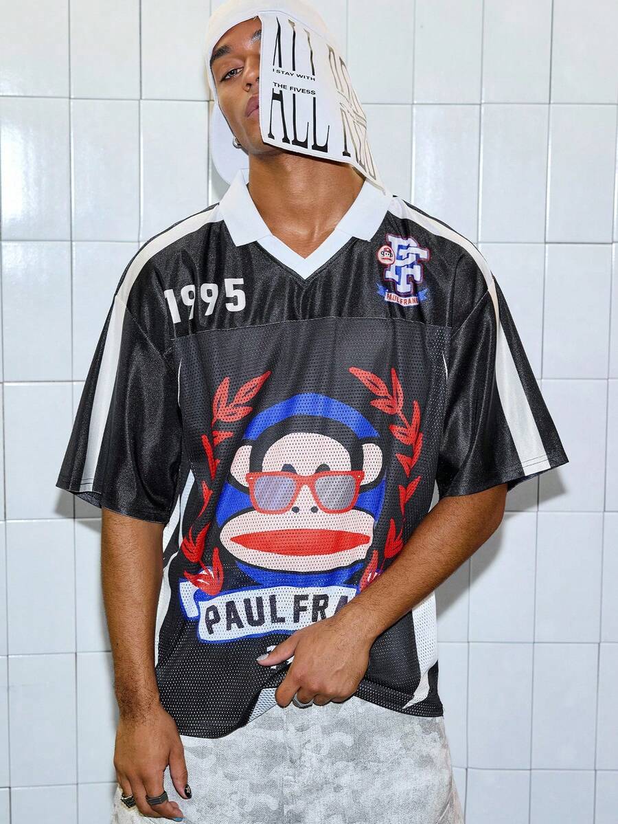 Paul Frank X ROMWE Men's Fashionable Summer Cartoon Monkey Print Short Sleeve Polo Shirt