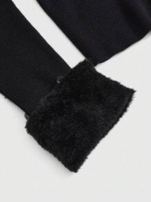 Paul Frank X ROMWE Plus Size Letter Rhinestone Decor Women Tight Fit Contrast Faux Fur Collar Cardigan