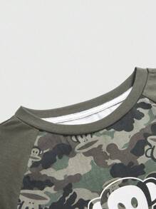 Paul Frank X ROMWE Women's Cartoon & Camouflage Pattern Round Neck Short Sleeve T-Shirt