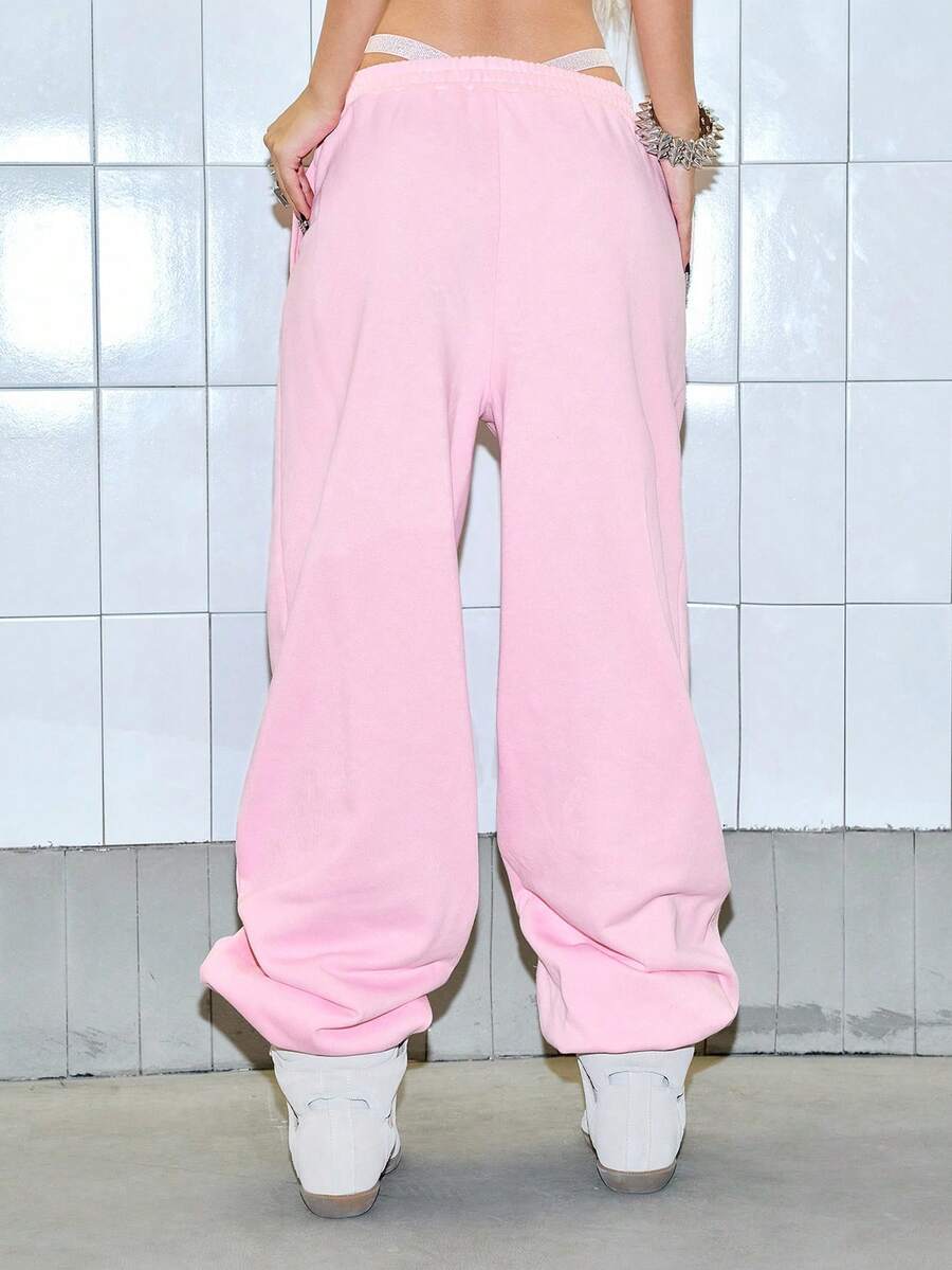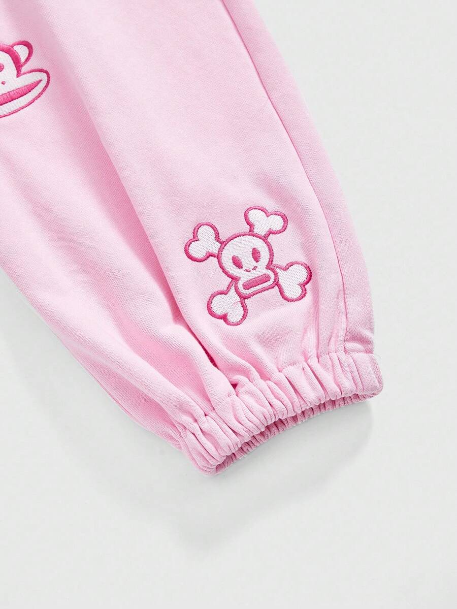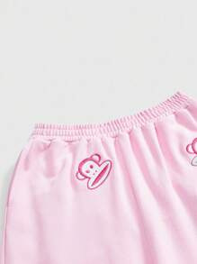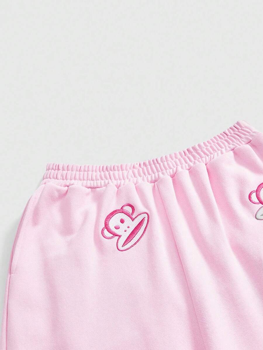 Paul Frank X ROMWE Women's Casual Letter & Monkey Embroidery Elastic Waist Pants