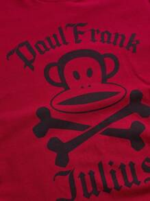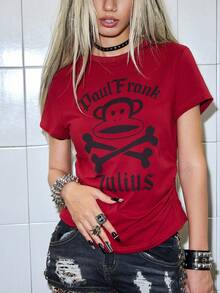 Paul Frank X ROMWE Women's Casual Monkey & Letter Graphic Round Neck Short Sleeve T-Shirt, Summer