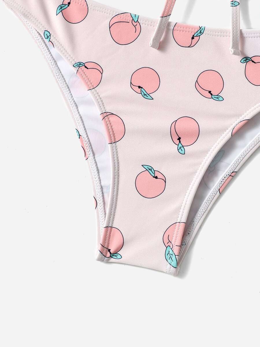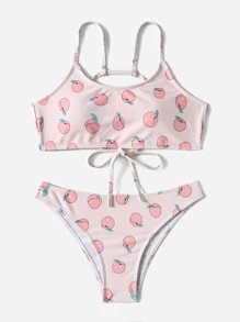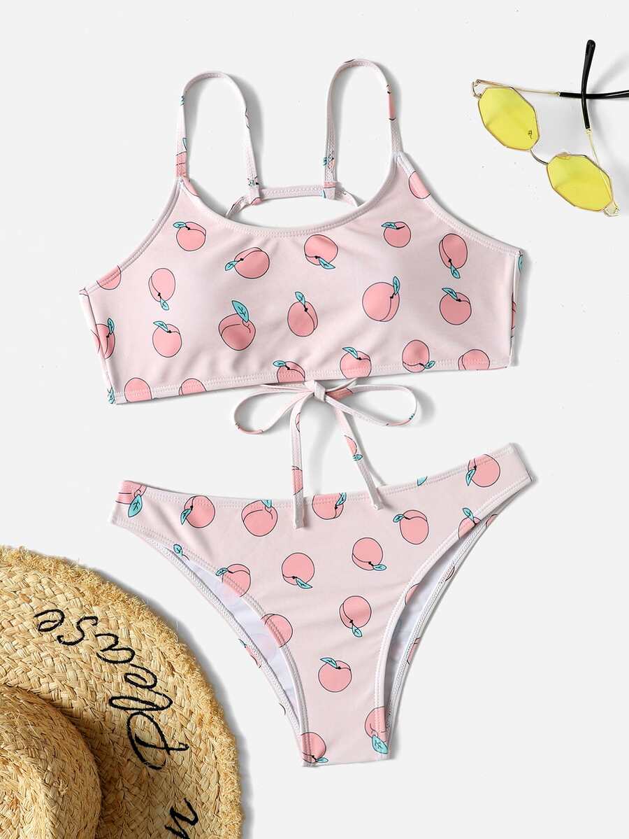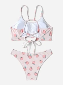 Peach Print Lace Up Bikini