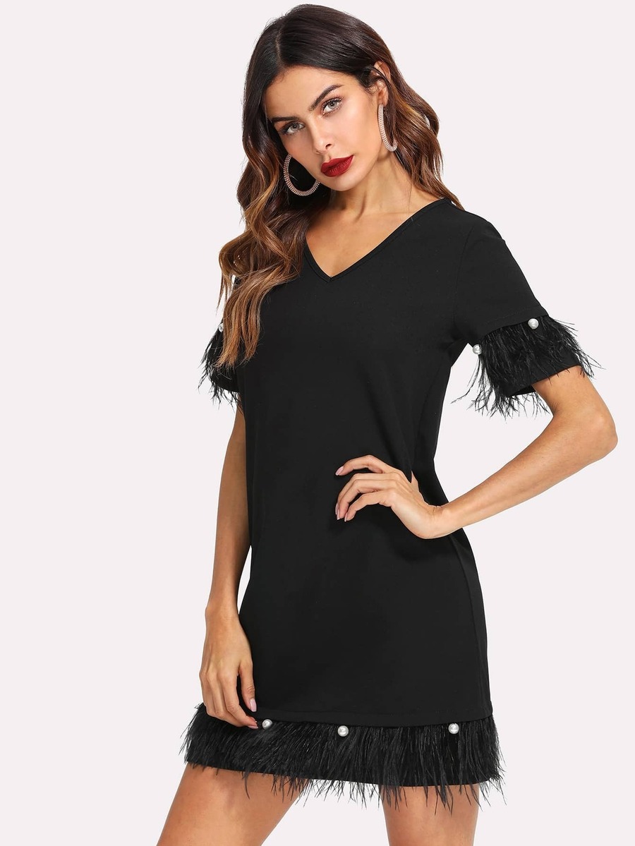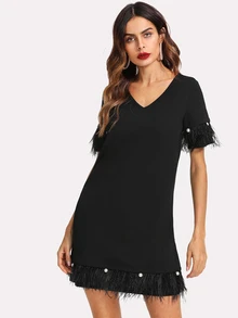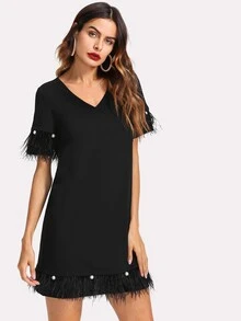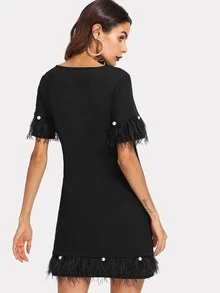 Pearl And Feather Embellished Trim Dress