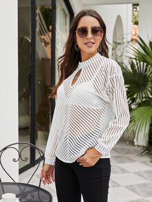 Peekaboo Front Drop Shoulder Sheer Blouse