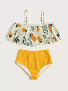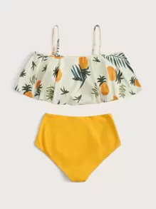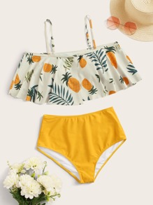 Pineapple Print Ruffle High Waisted Bikini Set Summer Beach