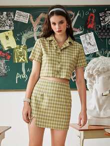 Plaid Button Front Shirt & Split Skirt