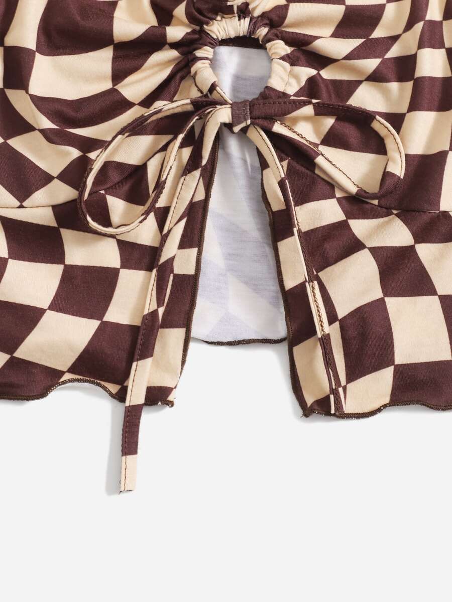 Plaid Drawstring Halter Top