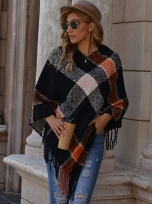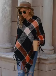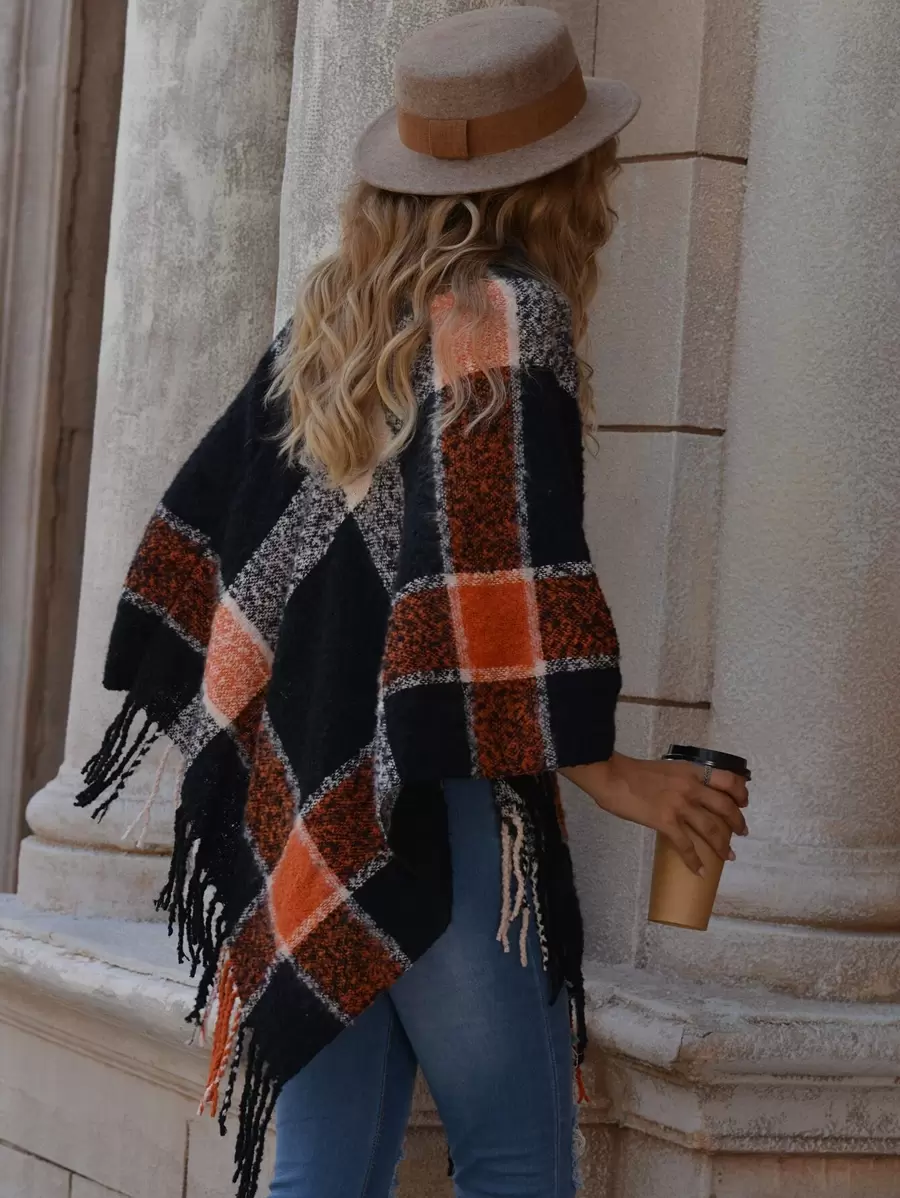 Plaid Fringed Poncho