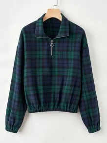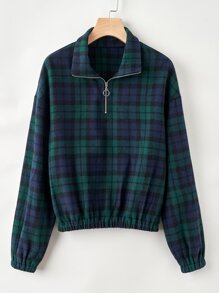 Plaid Half Zip Sweatshirt