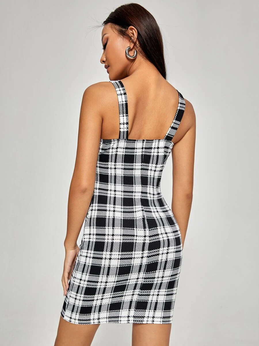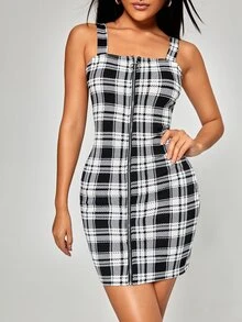 Plaid O-ring Zip Up Overall Dress Without Tank