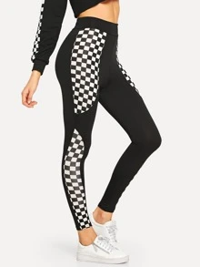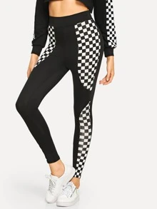 Plaid Panel Skinny Leggings