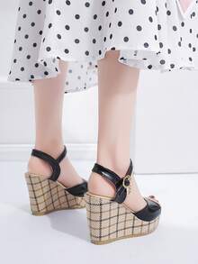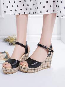 Plaid Print Wedge Sandals