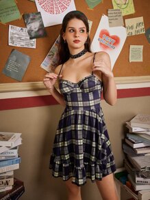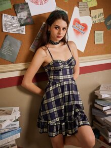 Plaid Ruffle Hem Cami Dress