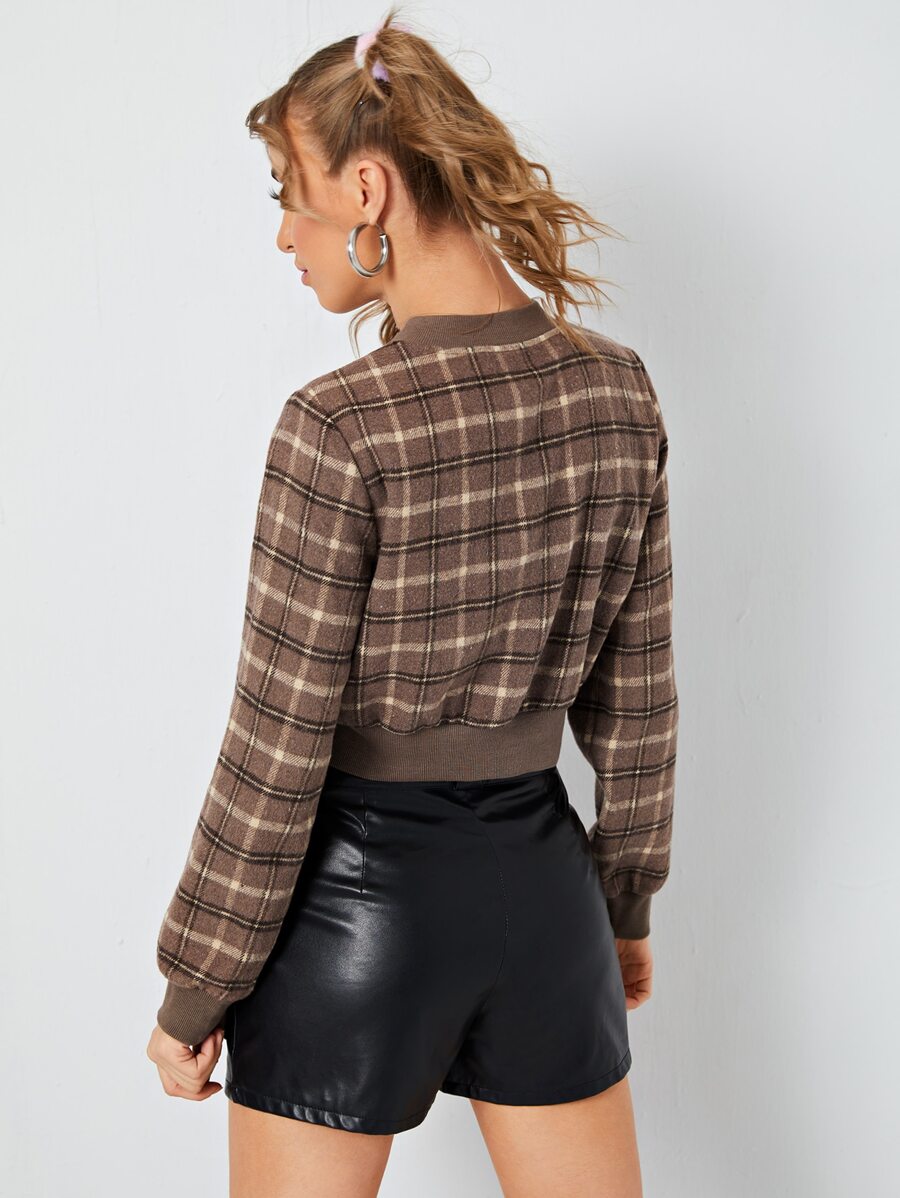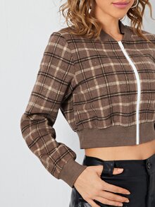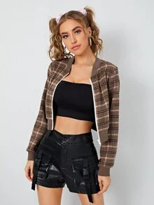 Plaid Zip Up Crop Bomber Jacket