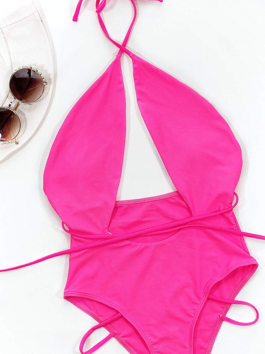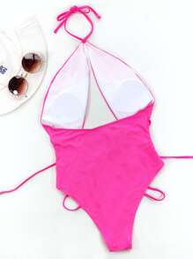 Plain Cut-Out Criss Cross Halter One Piece Swimsuit, For Summer Beach Vacation