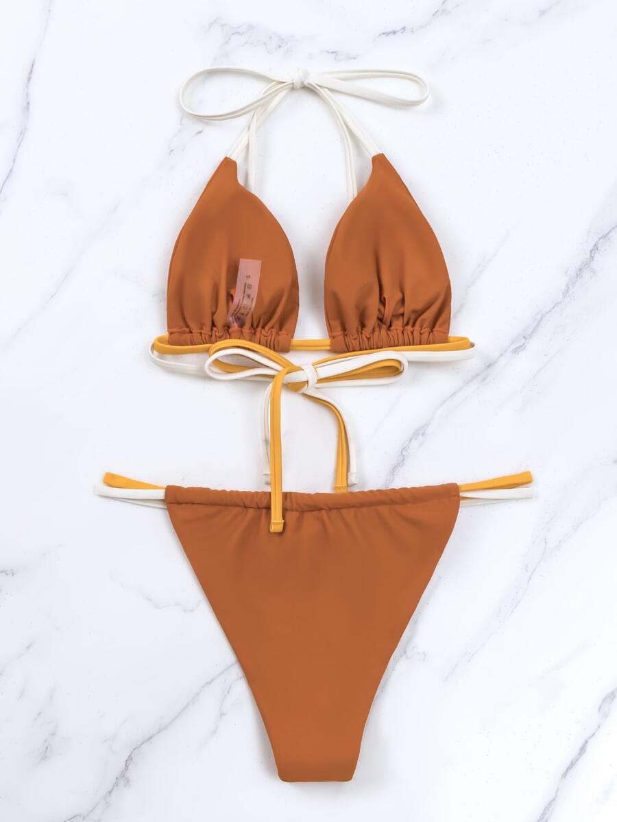 Plain Halter Triangle Summer Beach Bikini Set