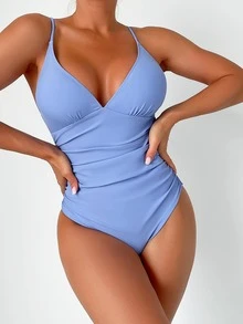 New Summer Women's Solid Color One-Piece Sexy Backless Swimsuit