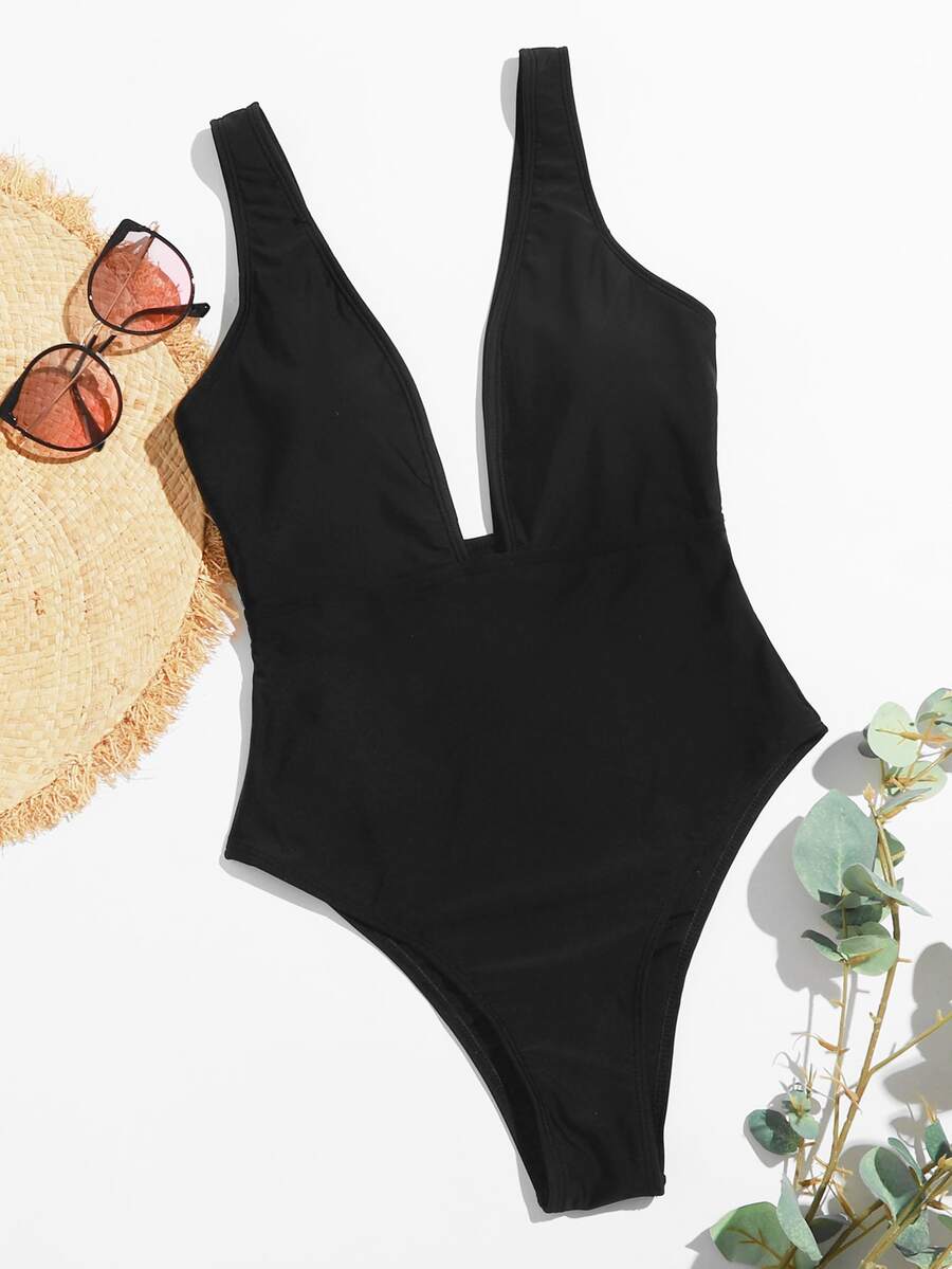 Plunge Neck One Piece Swimsuit