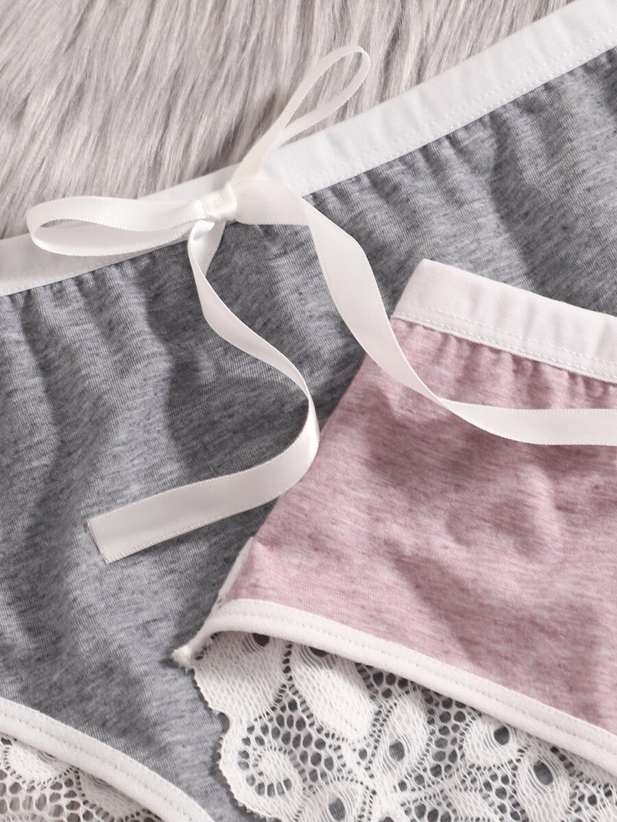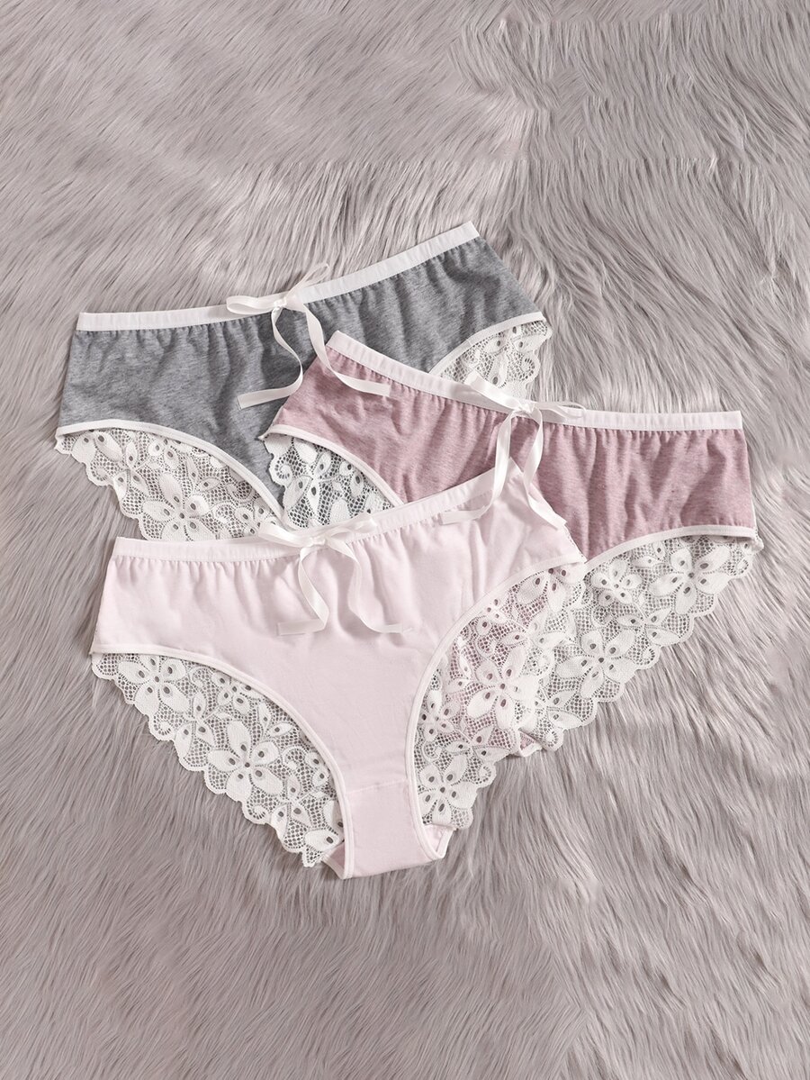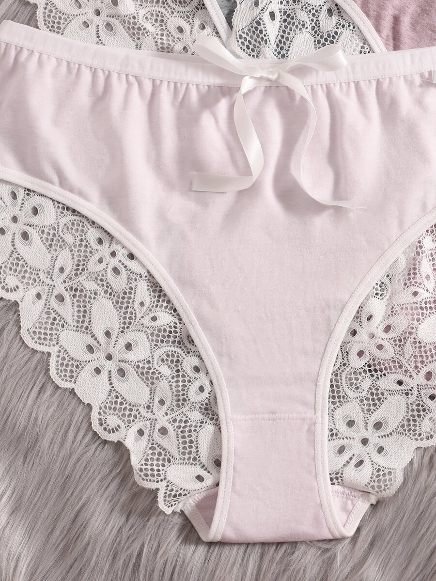 Plus 3pack Contrast Lace Bow Front Panty