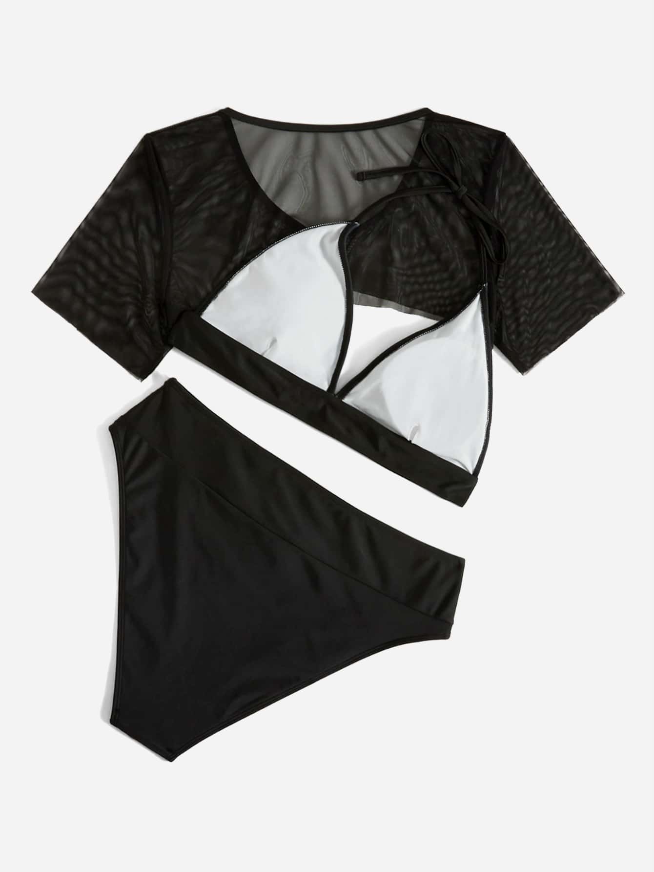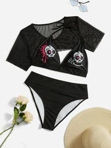 Plus Size 3packs Skull Print Halter High Waist Bikini Set Summer Beach