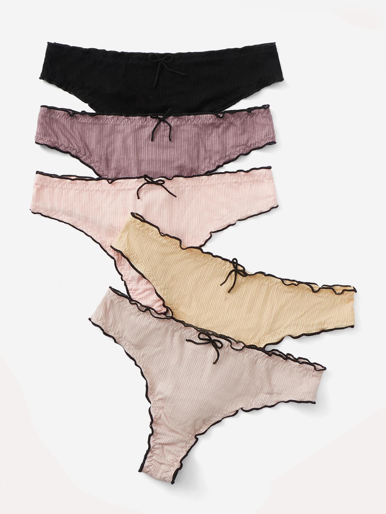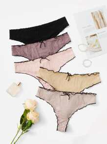 Plus 5pack Lettuce Trim Bow Decor Panty