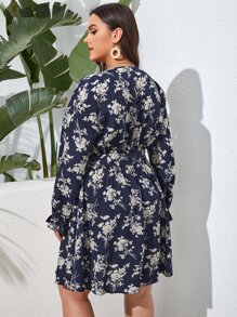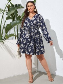 Plus Allover Floral Belted A-line Dress