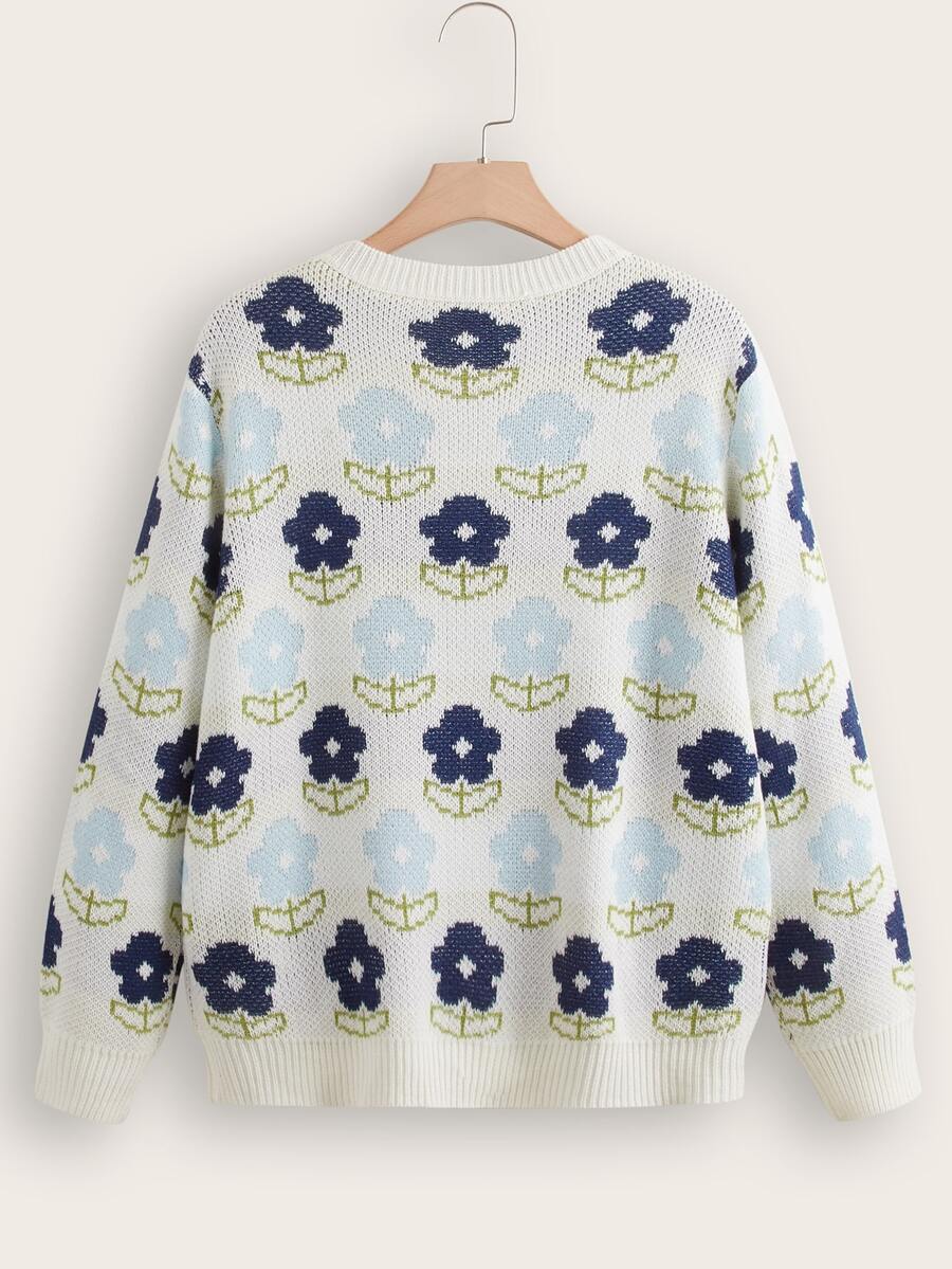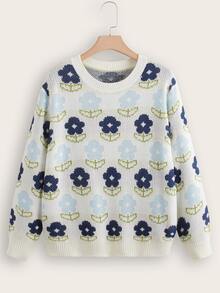 Plus Allover Floral Pattern Sweater