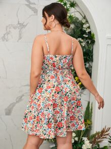 Plus Allover Floral Print Belted Cami Dress