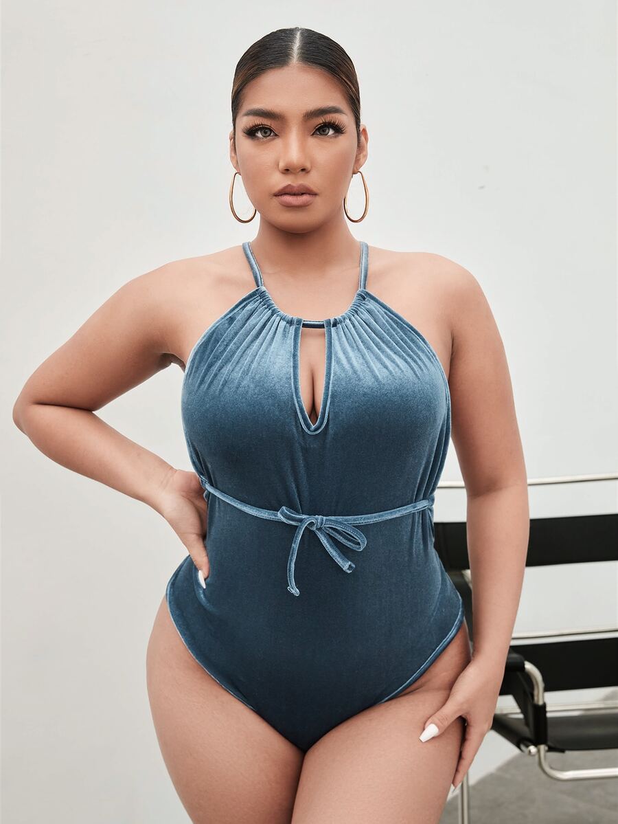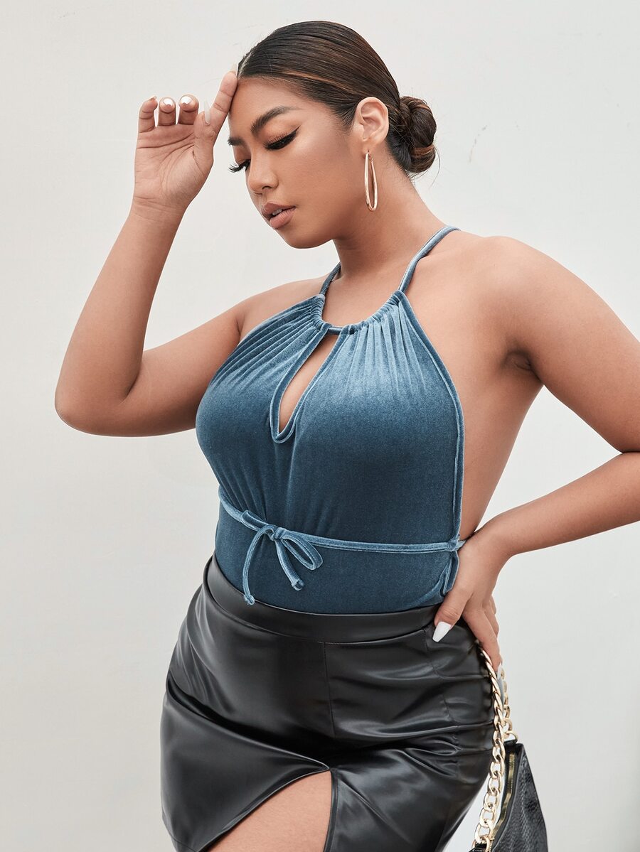Plus Backless Velvet Bodysuit