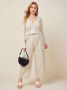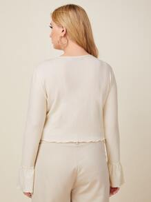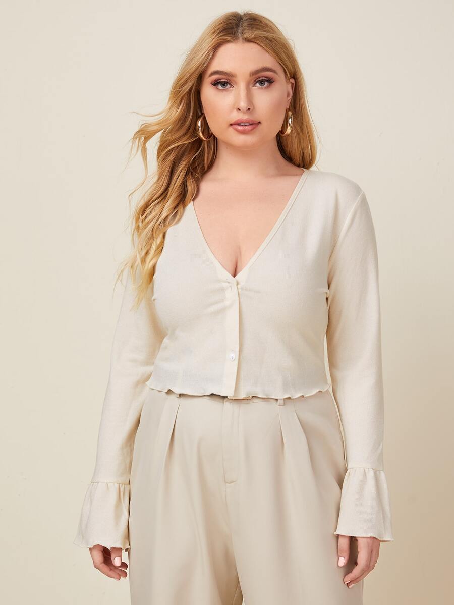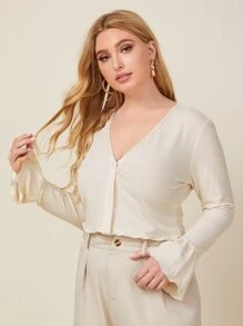 Plus Bell Sleeve Lettuce Edge Button Up Top