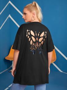 Plus Butterfly Cut Out Back Drop Shoulder Tee