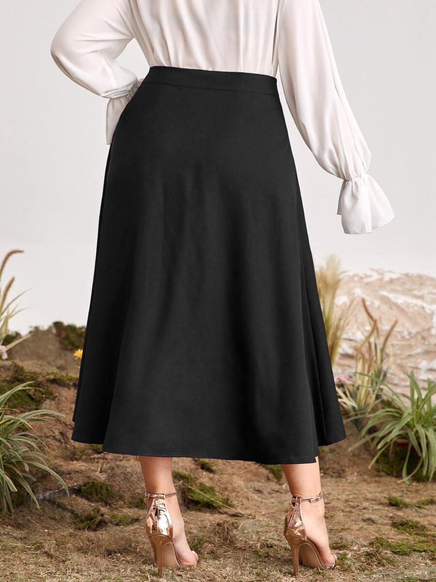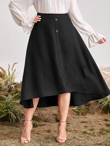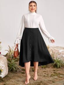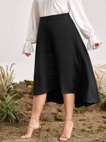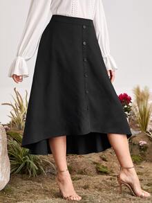 Plus Buttoned Front Dip Hem Skirt