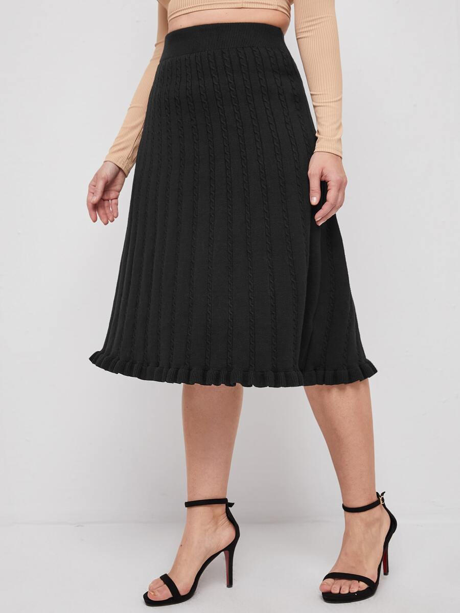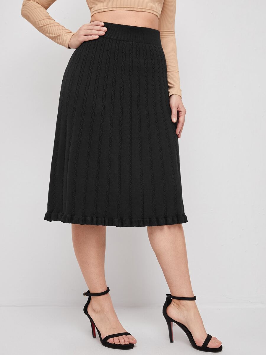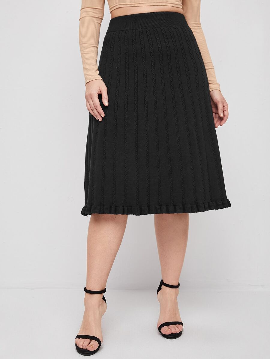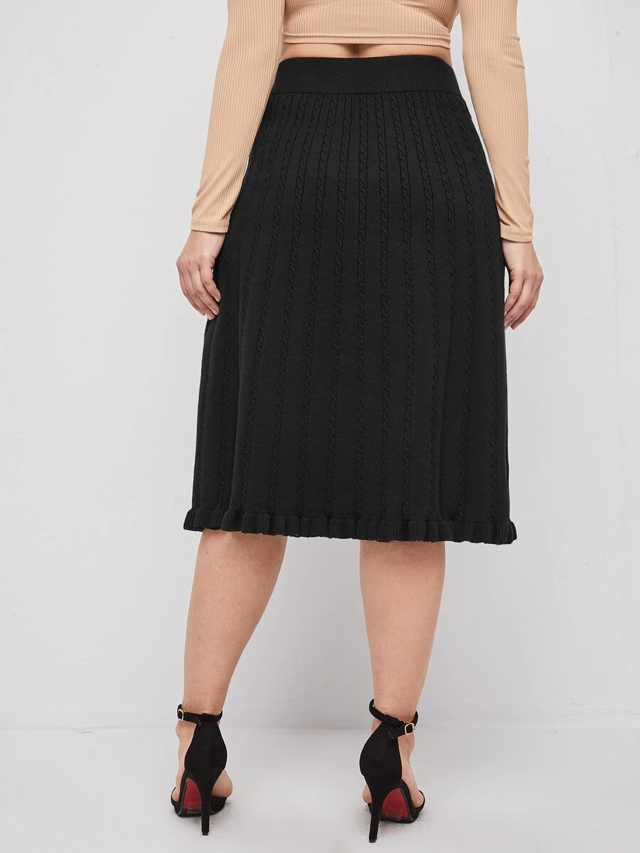 Plus Cable Knit Ruffle Hem Knit Skirt